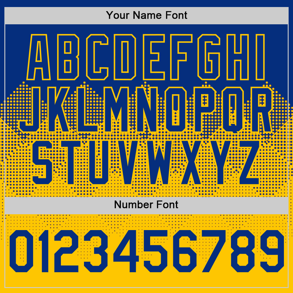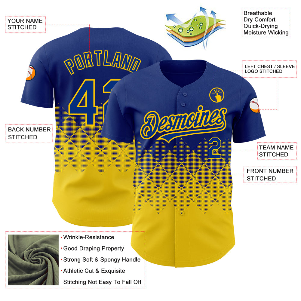 Custom Royal Yellow 3D Pattern Design Gradient Square Shapes Authentic Baseball Jersey