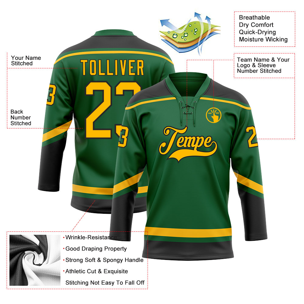 Custom Kelly Green Gold-Black Hockey Lace Neck Jersey